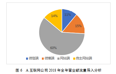 A互联网公司没有形成线上互联网营销的主渠道,营销团队中创新性做法还不足。原因有三点,一是在宣传上没有过多吸引人的地方,客户会认为与我公司合作与其他公司相比没有什么优势。二是由于缺乏公司线上宣传渠道,客户对该公司现有技术水平和能力无法了解也不能完全信任。三是目前A互联网公司虽然在细分领域已经占有较高的市场份额,但还无法做到绝对的定价权和话语权,在其他公司故意挑起价格战的情况下,无法保证能够取得更多业务。