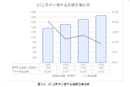 本文以 AT 公司为主要的研究对象,该公司目前的企业规模在国内代理市场处于中等规模,如果要在激励的竞争中获取一定的市场份额,就必须进一步拓展中小客户市场,对当前客户结构模式进行系统的改革。就目前调查情况可知,大客户销售额占 AT 公司销售额在 80%左右,而中小客户销售额则在 20%左右。由此可见中小客户业务量占企业总销售额非常低,且每年增长率都呈现持续下降趋势。中小客户市场增长率低是企业在营销过程中存在的主要问题。这一问题如不改善,将不利于企业销售经营,不利于企业建立市场竞争优势,也不利于企业发展潜在大客户,后续发展过于局限。因此拓展中小客户市场已势在必行。AT 公司只有扩大中小客户市场, 把该市场作为公司发展战略的主要内容,才有可能改善当前的发展窘境,其营销策略的制定在一定程度上会影响整个公司的发展。制定适合中小客户的营销策略,并适应快速变化的市场,是 AT 公司在整体战略部署的重中之重。
